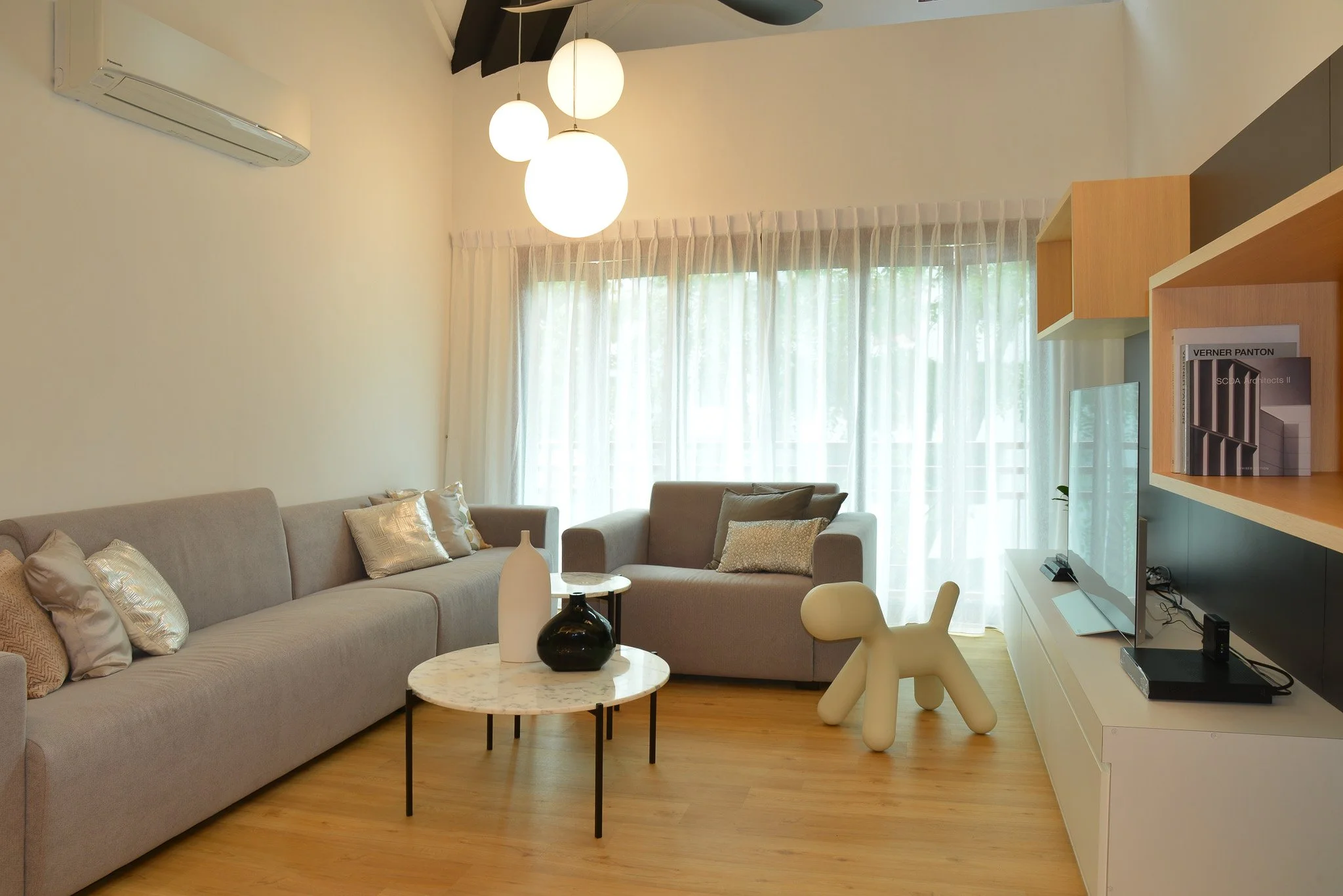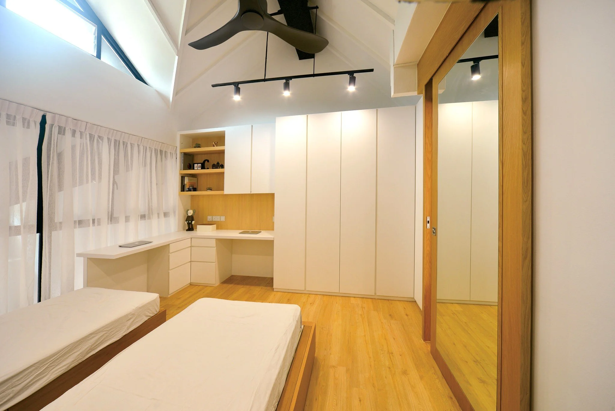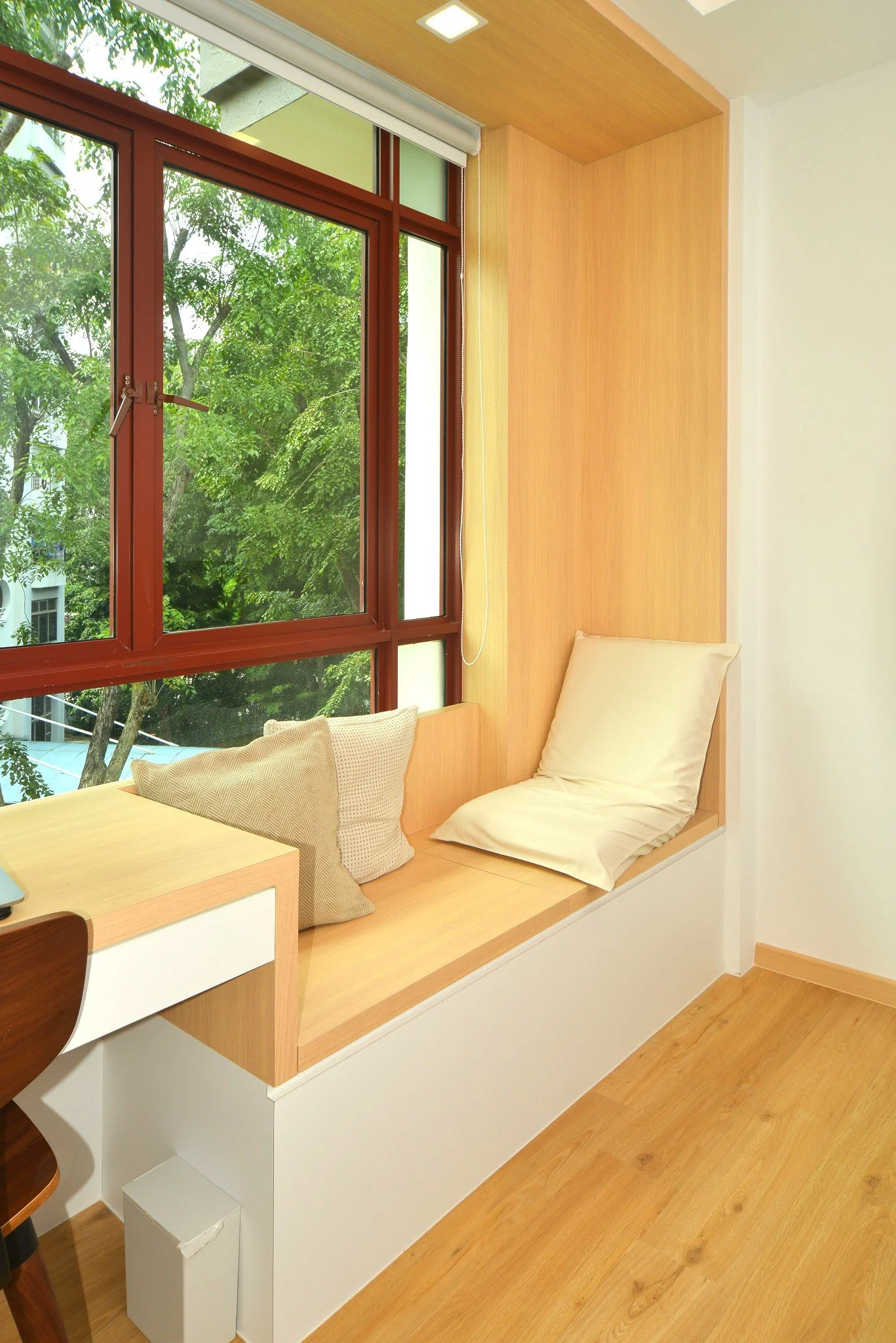 This condominium blends a clean white palette with warm wood tones to create a bright and modern living space. Key areas like the dining and kitchen zones balance bold and neutral finishes, layered materials, and functional storage. The living room contrasts light and dark elements with refined detailing, while custom cabinetry and integrated nooks in the bedrooms provide smart storage and a cozy, cohesive feel. Each space is designed to balance comfort, style, and everyday functionality.