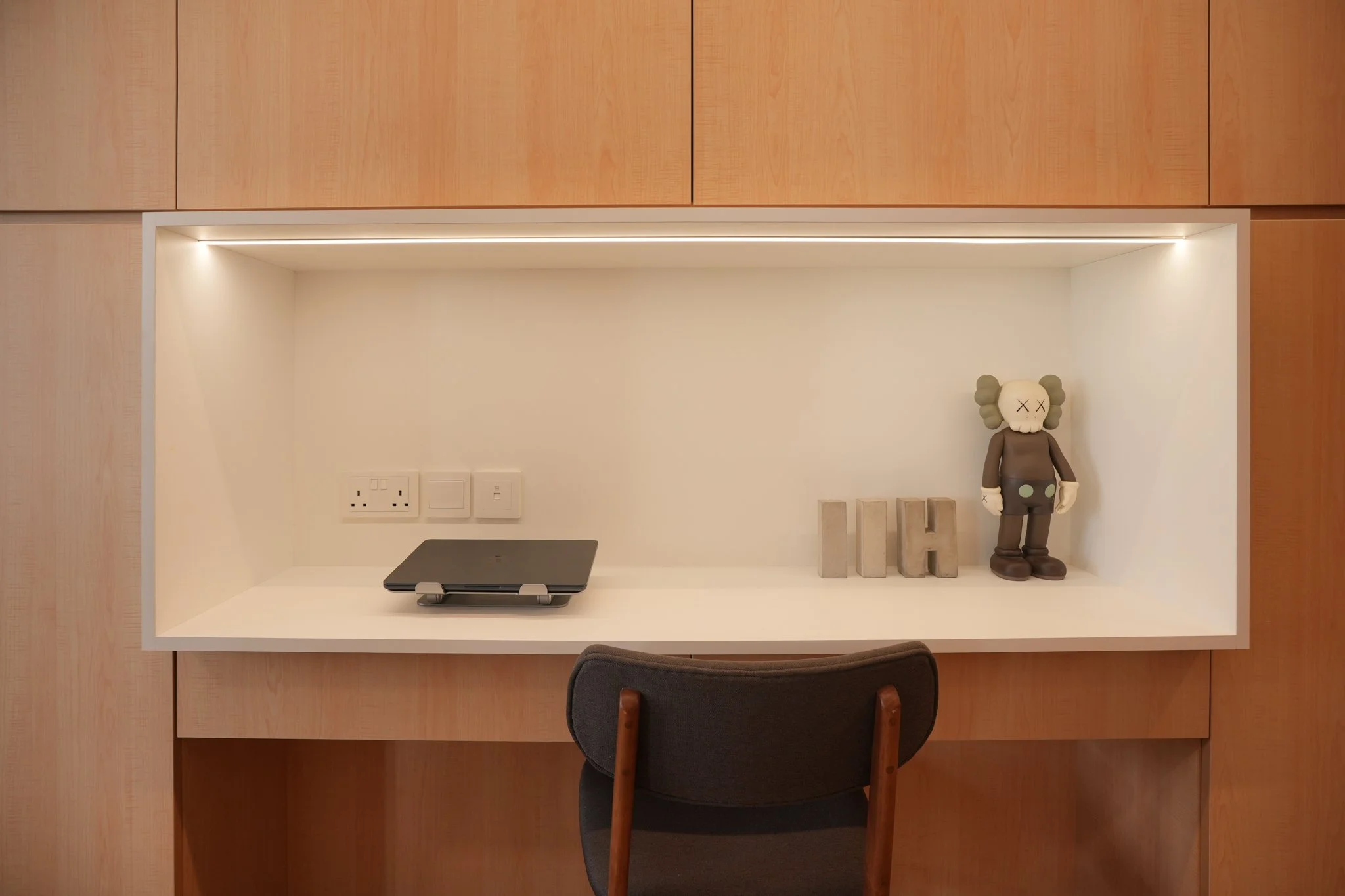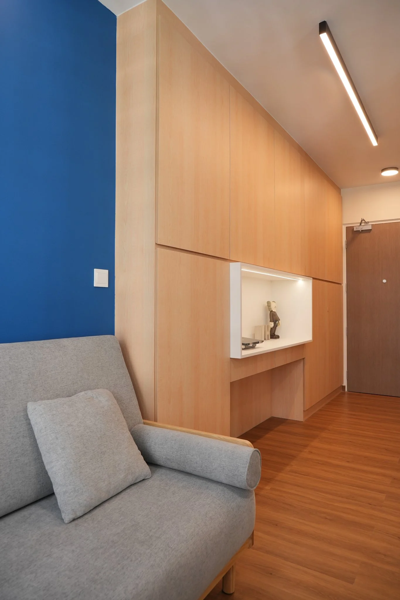 This 2-room apartment has been re-imagined into a Japandi-inspired minimalist space, balancing storage and open space. Thoughtful storage solutions keep clutter at bay, while an open living room-bedroom layout creates a welcoming space. Stylish door dividers ensure privacy, maintaining a serene and functional atmosphere that is both visually spacious and aesthetically pleasing.
