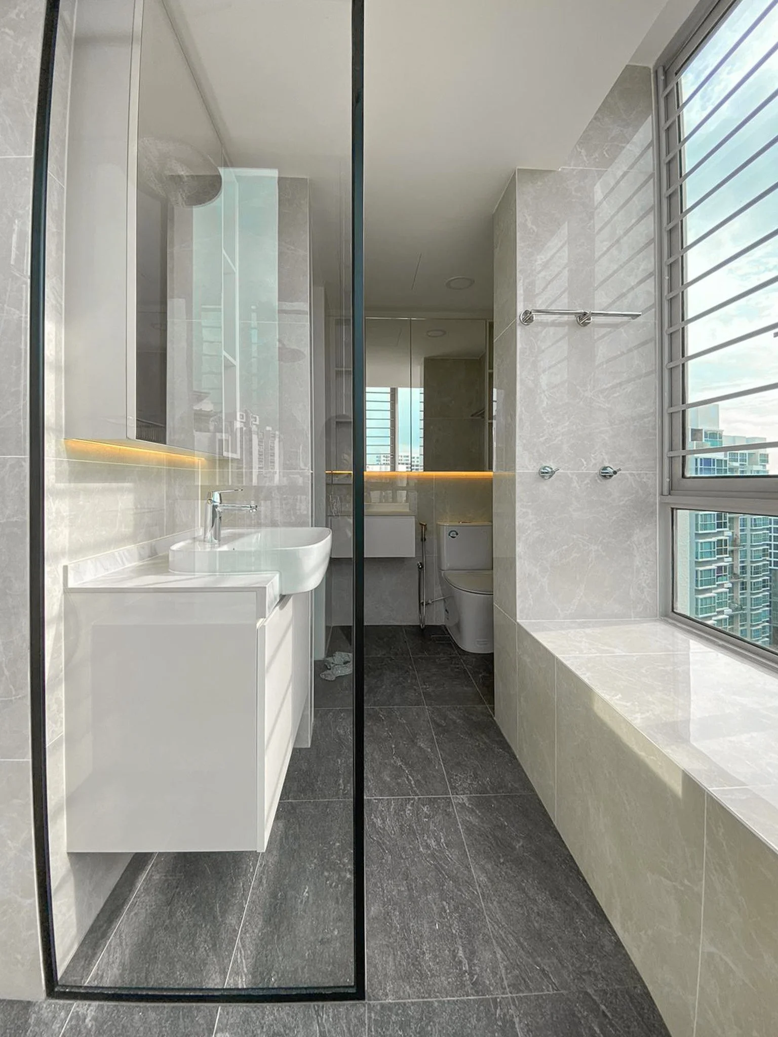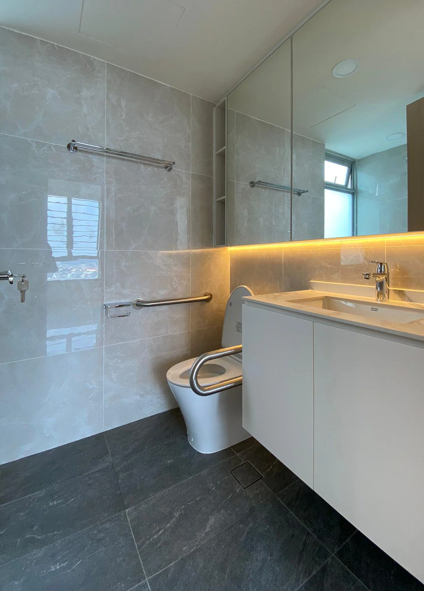 This home balances everyday living with a clean, functional aesthetic that meets the family’s daily needs while incorporating thoughtful adaptations for comfort and accessibility. Special attention was given to the bathrooms to support an elderly couple’s independence, including built-in seating, repositioned fixtures, and wheelchair-friendly features that create a safer, more comfortable living environment.