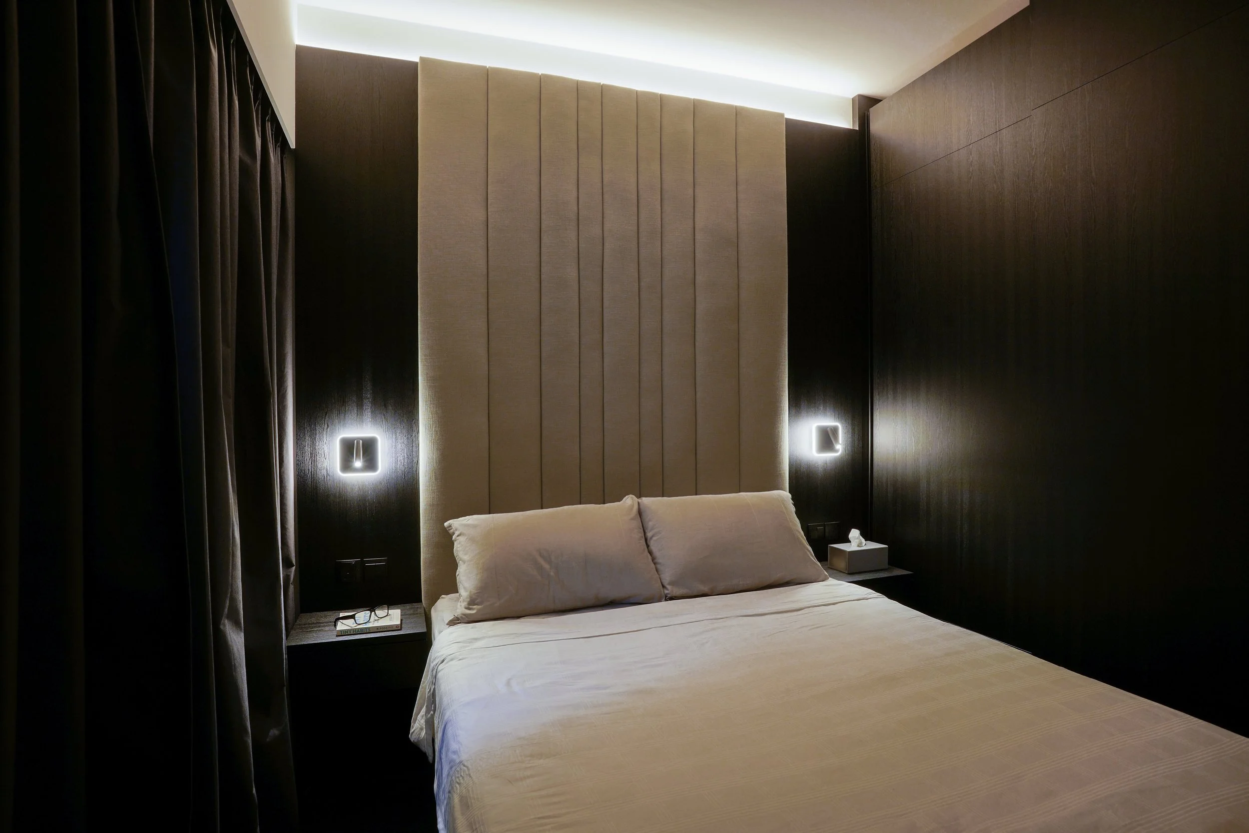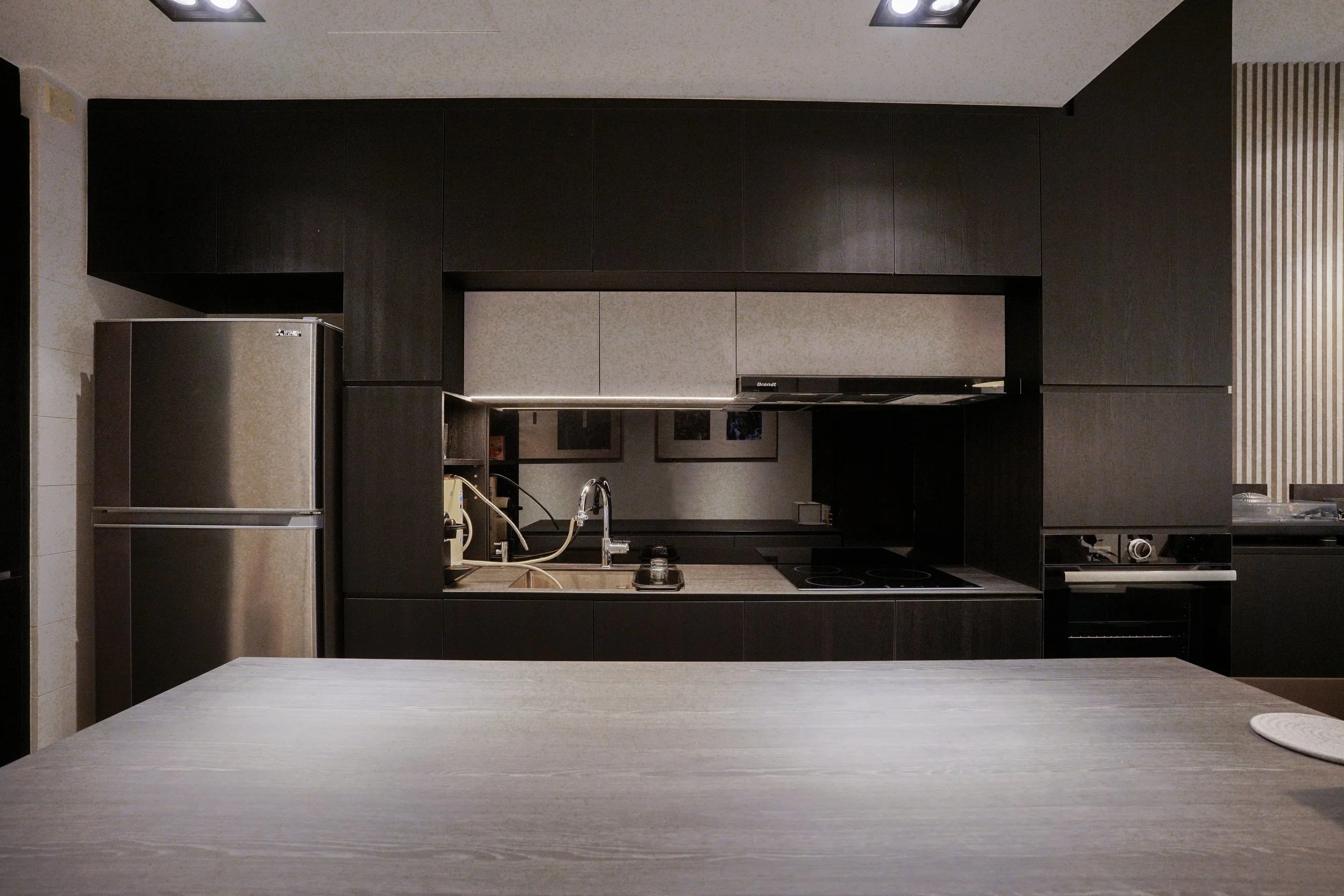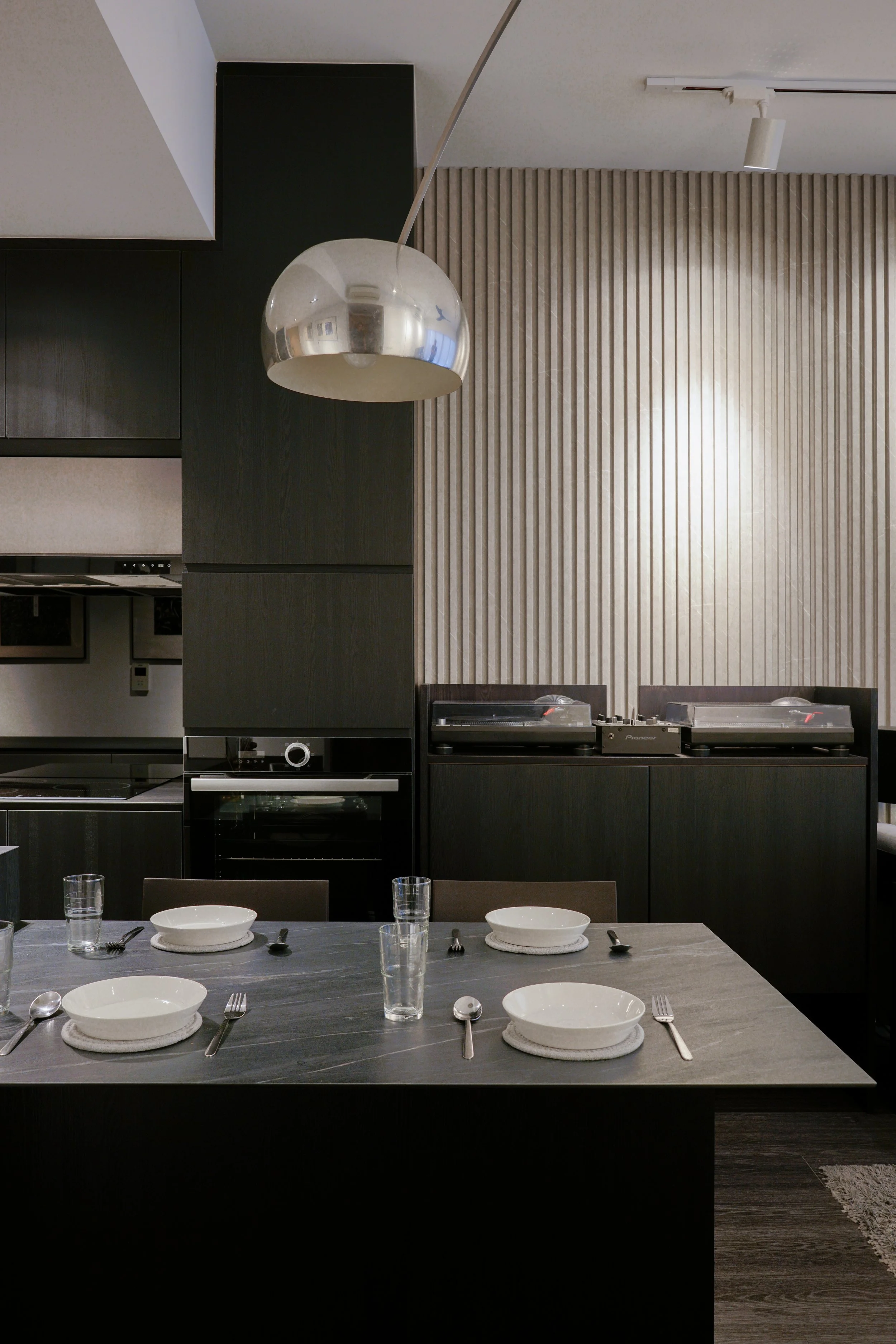 This condominium was reimagined as a serene retreat with the calm and refinement of a luxury hotel. A dark, modern palette anchors the space, while clean lines, layered materials, and subtle textures bring warmth and depth. Seamless spatial flow, built-in storage, and custom touches combine function with understated elegance throughout.
